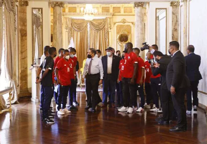 El seleccionado panameño conoció algunos salones del Palacio y luego se reunió con el presidente Cortizo Cohen, quien los felicitó y les entregó estímulos deportivos.