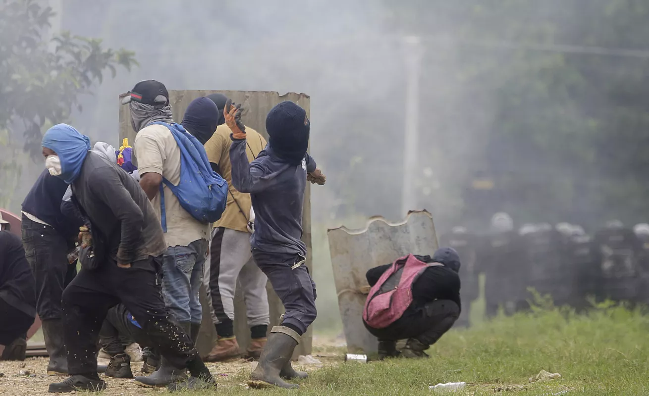 El enfrentamiento comenzó cuando la Policía llegó para despegar un tramo de la carretera Panamericana, que atraviesa todo el país, bloqueado con troncos de árboles derribados en las cercanías, donde además se ubica Arimae.