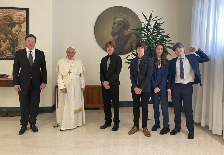 Fue Musk quien confirmó el encuentro al publicar una foto en Twitter en la que se le ve junto con el papa Francisco y cuatro de sus siete hijos.