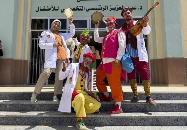 En el hospital infantil de Al-Rantisi, en el corazón de la ciudad de Gaza, el ruido de las máquinas médicas y el sonido aterrador de la guerra han sido opacados por las risas y la música de un grupo de payasos que busca entretener a los más pequeños con canciones, marionetas y pompas de jabón.