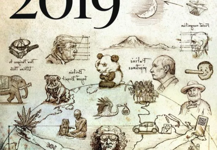La edición "El mundo en 2019" fue un collage que mostraba numerosas imágenes dibujadas y acertijos que esconden vaticinios.