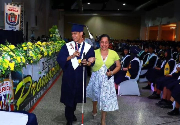 El joven con discapacidad visual Raúl Durán se graduó con el primer puesto de honor de la promoción 2019 del Instituto América.