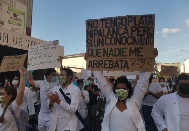 Un grupo de estudiantes y miembros de la Federación Nacional de Médicos Residentes e Internos (Fenameri) realizaron una marcha que inició en el Parque Porras y culminó en la Asamblea Nacional de Diputados.
