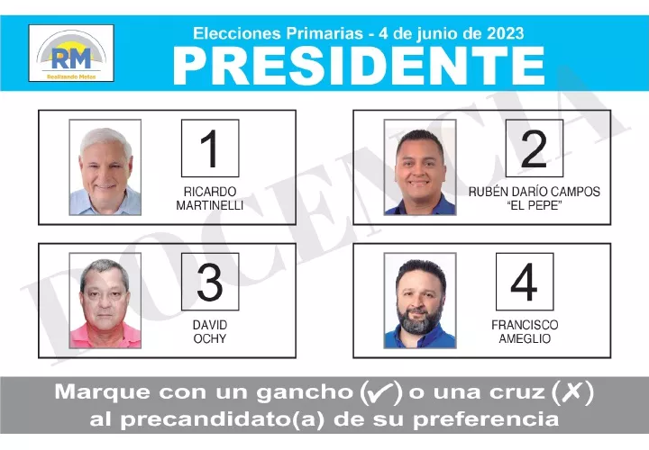 Unos 234,700 miembros del opositor partido Realizando Metas (RM) participarán el domingo en las primarias presidenciales, donde participaron cuatro precandidatos, pero se da por descontado un aplastante triunfo de Ricardo Martinelli.