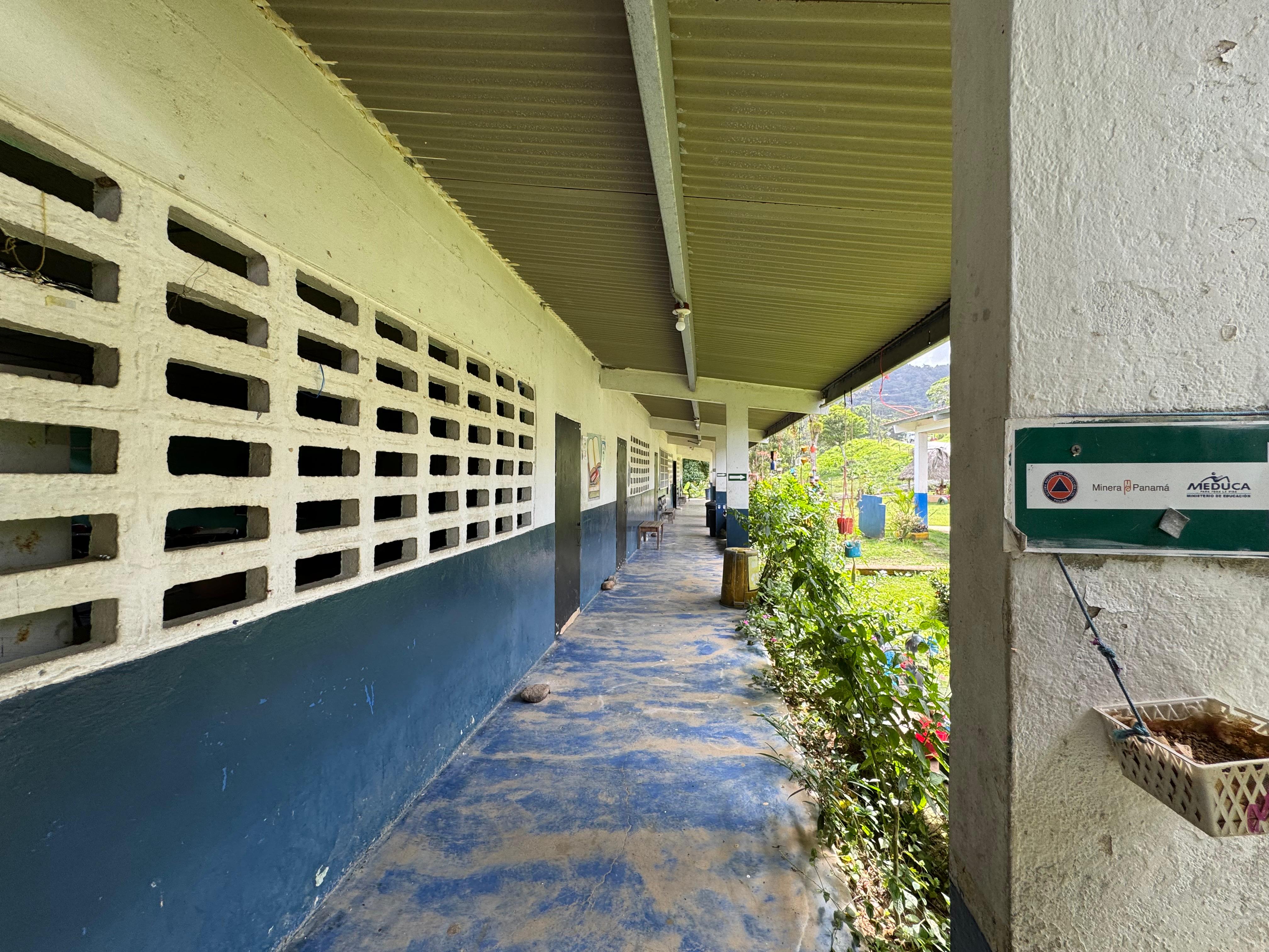 En la Escuela de Río Caimito, por ejemplo, los problemas son evidentes. Los pasillos, que deberían ser un espacio seguro para los estudiantes, carecen de baldosas y están llenos de grietas, lo que genera riesgos de accidentes. Las filtraciones en los techos son una constante preocupación, pues con las lluvias intensas, las aulas se convierten en espacios incómodos y, en ocasiones, inseguros. A lo largo de los años, los pasillos y aulas han perdido la pintura y el mobiliario se encuentra en un estado deplorable.
