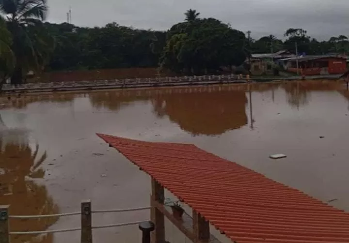 El mal tiempo en Colón sigue haciendo de las suyas. Este lunes, fuertes lluvias provocaron el desbordamiento del río en la comunidad de Nombre de Dios, cabecera del distrito de Santa Isabel, en la Costa Arriba de Colón.