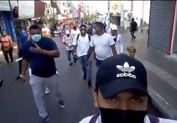 Un grupo de buhoneros, barberos y trabajadores informales marchan hoy, lunes, hacia la Presidencia de la República, ubicada en San Felipe.