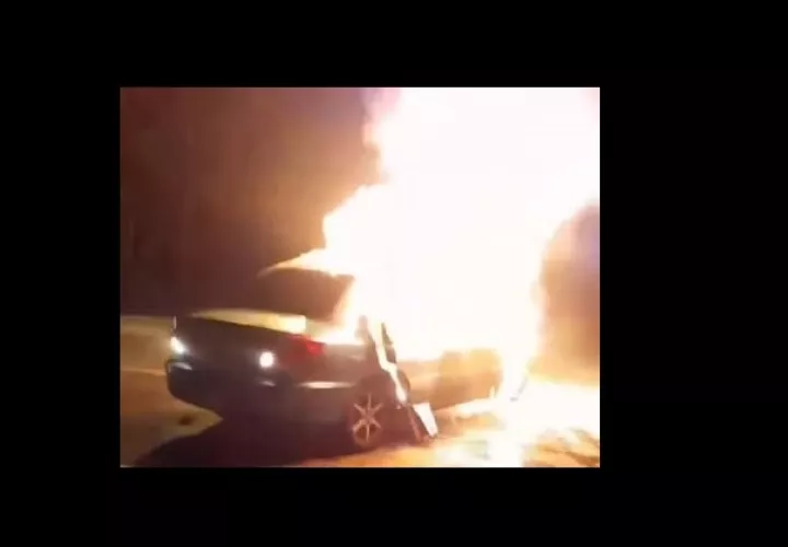 Las llamas envolvieron el automóvil sedán después del impacto devastador, pero gracias a la rápida acción de los héroes anónimos que pasaban por allí, las víctimas fueron rescatadas de las garras del infierno en llamas.