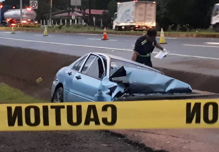 Los primeros datos extraoficiales indican que el conductor del auto, tipo sedán, se salió de la vía y chocó contra una alcantarilla (objeto fijo).