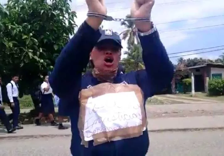 Una agente de la Policía Nacional (PN) protestó ayer frente al cuartel de la entidad de Almirante, provincia de Bocas del Toro.