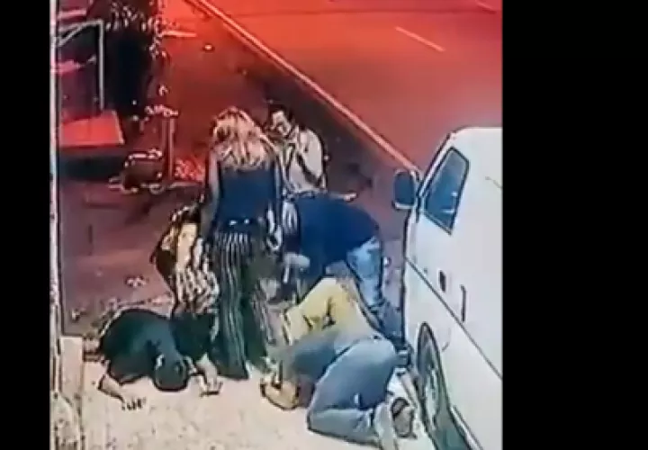 Una cámara de seguridad captó cómo tres delincuentes, disfrazados de mujer, le robaron a cuatro personas que se encontraban cerca del centro La Paz en Aguadulce, provincia de Coclé.
