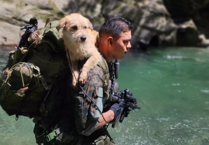 El Servicio Nacional de Fronteras compartió el rescate de un perro abandonado por migrantes en el corredor humanitario de Darién. El Teniente Marino Aguirre, de la 5ta Brigada de Fuerzas Especiales, protagonizó una conmovedora historia.