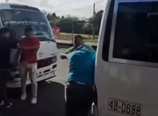 Busero hace giro indebido y se vuelca en el puente de las Américas (Video)