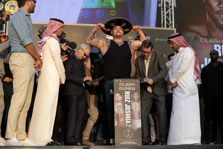 El mexicano-estadounidense Andy Ruiz subirá al cuadrilátero este sábado contra el británico Anthony Joshua con más peso que cuando derrotó al europeo en junio, según se confirmó en el pesaje de este viernes en Riad, Arabia Saudí.