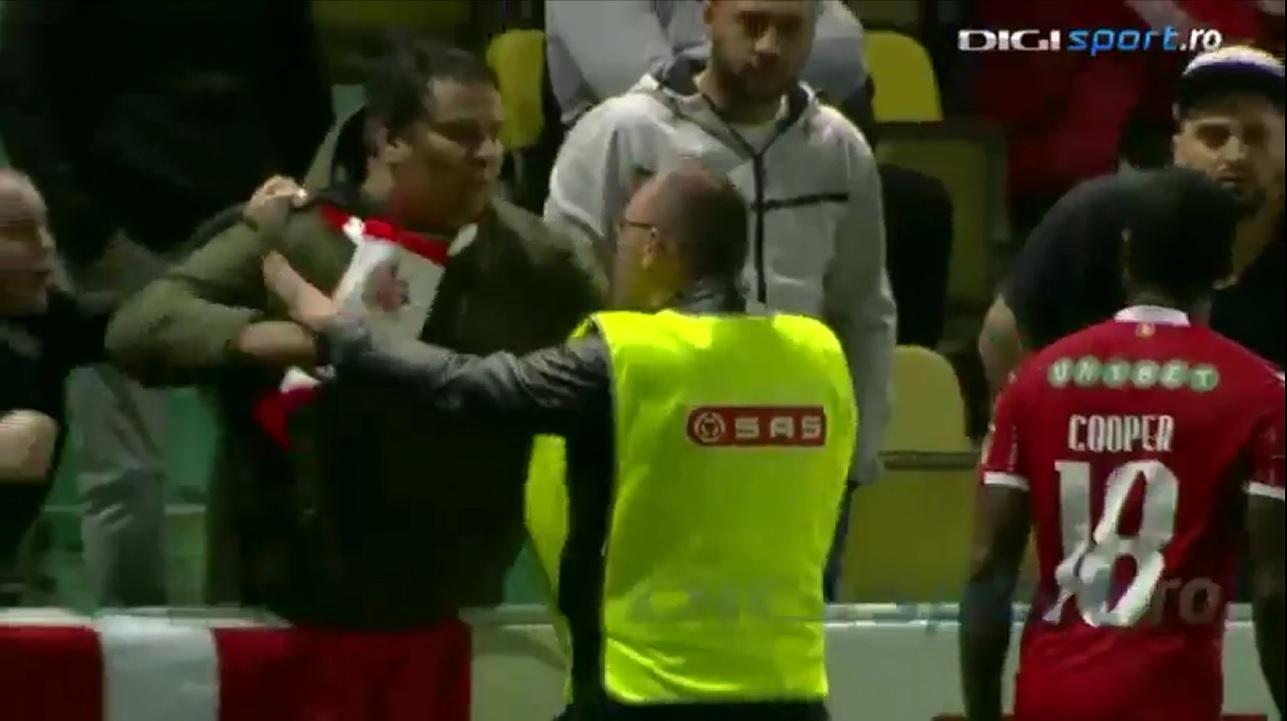 Cooper, del Dinamo de Bucarest, recibió una tarjeta amarilla durante el encuentro que quedó 0-0. El cartón de amonestación le fue mostrado al minuto 84 tras protagonizar el incidente con los fanáticos del equipo rival.