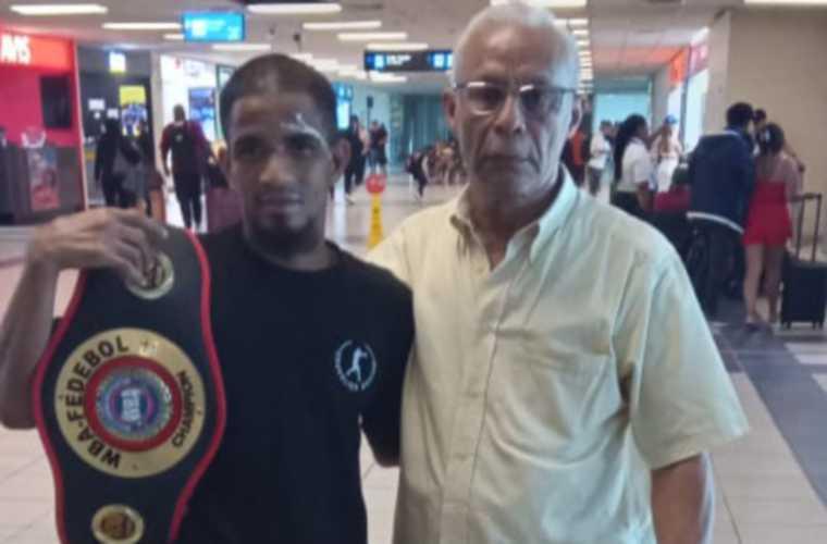 ‘Candelilla’ Villar llegó a Panamá con el cinturón de la AMB y junto a su entrenador Rigoberto Garibaldi.