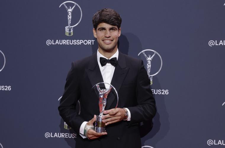 El tenista español Carlos Alcaraz fue distinguido ayer lunes en Madrid con el premio Laureus al mejor deportista del año, después de conquistar ocho títulos en 2025, entre ellos Roland Garros y el Abierto de Estados Unidos, y de terminar el año pasado como número uno del mundo.