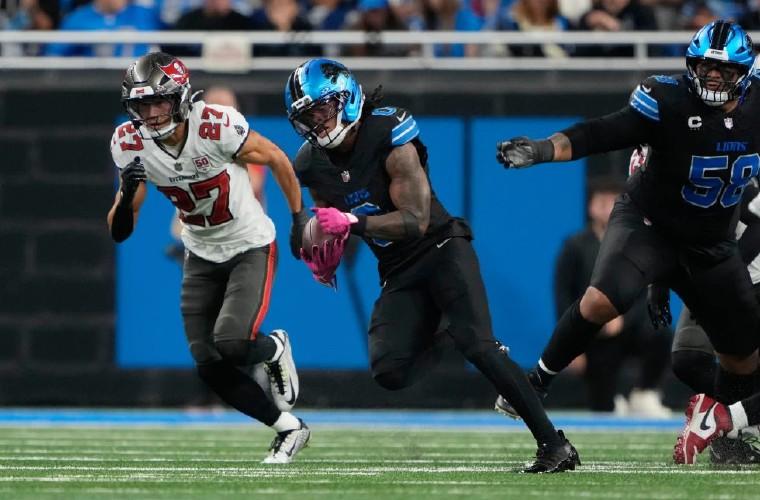 Jahmyr Gibbs anotó en una carrera de 78 yardas en el segundo cuarto, una zambullida giratoria de cinco yardas en el tercero y acumuló un récord personal de 218 yardas desde la línea de golpeo para liderar a los Lions de Detroit en una victoria de 24-9 sobre los Buccaneers de Tampa Bay.