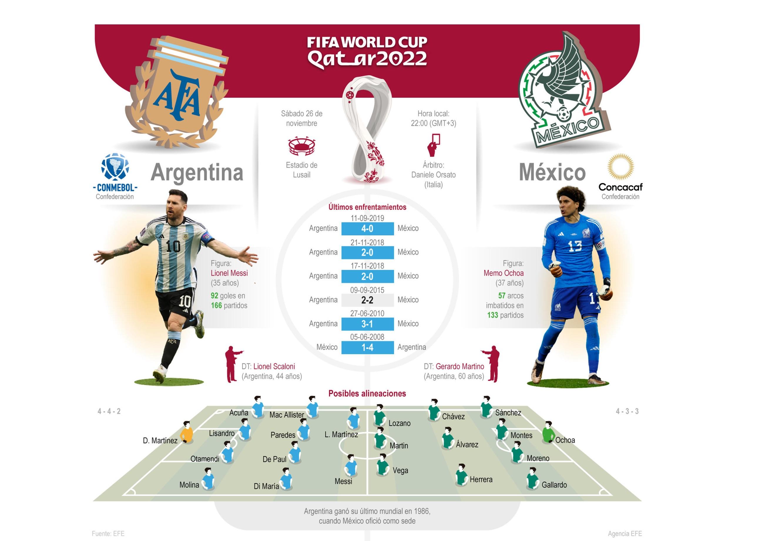 Doha. Argentina y México, dos viejos conocidos, encaran este sábado sus intereses en un duelo clave para el futuro de ambos en Qatar 2022, prematuro, en plena fase de grupos, desviado de su previsión inicial por los inesperados resultados obtenidos en los primeros partidos.
