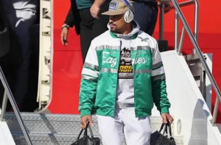 En la pista ya los esperaban cinco autobuses para llevarlos a su sede de concentración. Jalen Hurts, quarterback del equipo, fue de los primeros en descender del avión, mostrándose muy concentrado.