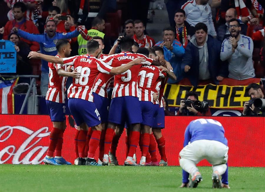 Los colchoneros, que habían hilvanado tres empates, llegaron a 19 unidades, mismas que posee el Barça, que no tuvo actividad este fin de semana luego de que el clásico liguero contra el Real Madrid fue pospuesto tras la convocatoria de una marcha proindependencia en la ciudad catalana.