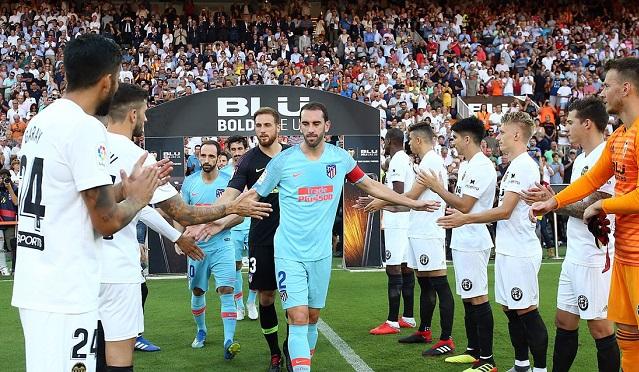 El Valencia hizo el pasillo al Atlético de Madrid como "supercampeón" de Europa, en los prolegómenos del encuentro que ambos equipos disputaron este lunes en Mestalla.