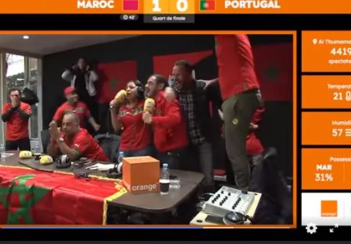 En Radiomars, la radio multiplataforma de Marruecos, la periodista deportiva Dounia Siraj fue la encargada de relatar el minuto a minuto del impredecible duelo. La euforia y algarabía aumentaban en la cabina de narración, a medida que el partido se acercaba al minuto 98.