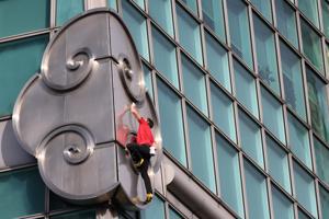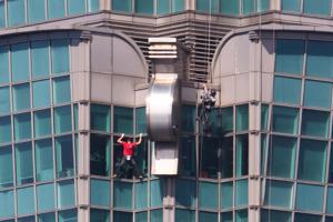 El primer reto fue superar la base del rascacielos, compuesta por 113 metros de acero y vidrio inclinados y dos estructuras metálicas conocidas como “ruyi”, que representaron el primer gran obstáculo.