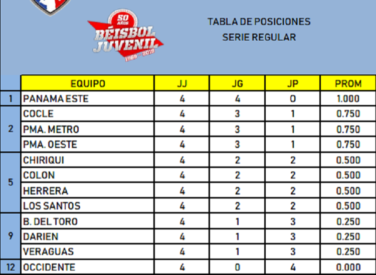 En los otros resultados de la cuarta jornada, Panamá Oeste superó 4 por 2 a Bocas del Toro; Panamá Metro se impuso 6-5 a Veraguas; Chiriquí despachó por abultamiento de carreras 12-1 a Darién y Los Santos acabó con el invicto de Coclé, al derrotarlo 5-3.