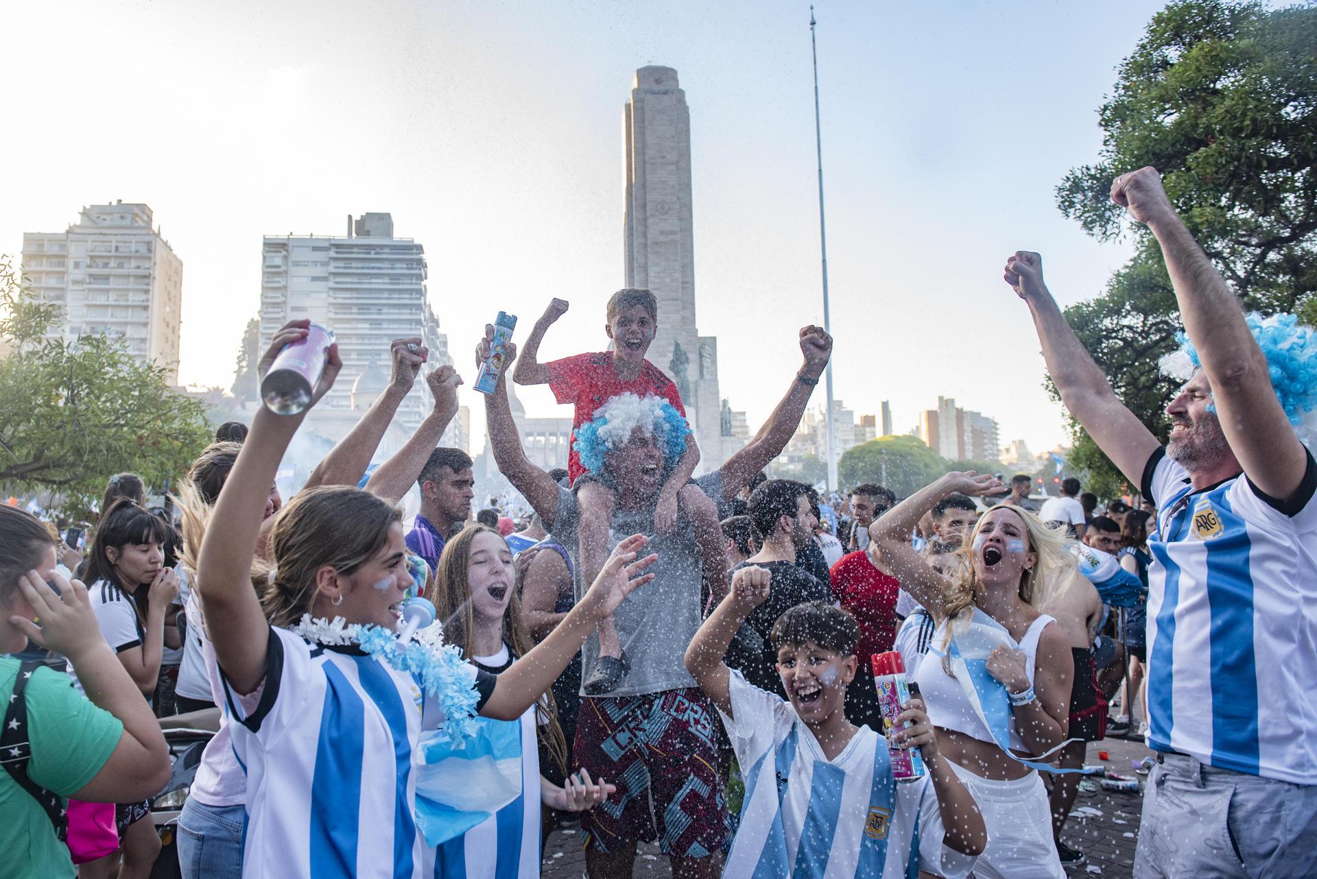 Todos ellos y muchos más se agolparon en las calles rosarinas tras la victoria final de la Albiceleste en Qatar ante la selección francesa: "Es una alegría inmensa, porque era lo que queríamos por él (Messi) y también por Di María, que también es rosarino", señaló Alejandra, mientras ella, toda su familia y EFE recibían cantidades industriales de espuma en espray por encima.