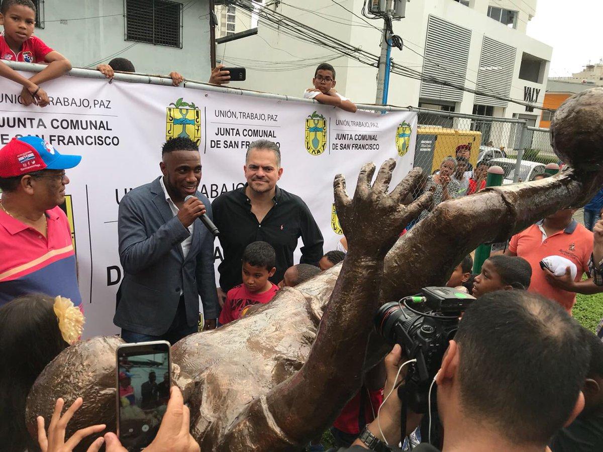 La estatua se encuentra en la barriada capitalina de Carrasquilla, la cual, dijo el "Matador" recuerda con mucho amor porque allí transcurrió parte de su infancia y también dio gracias a la gente de San Joaquín, otro barrio donde Tejada vivió en su niñez.