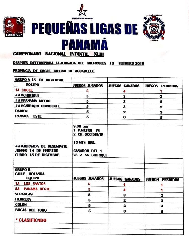 Las cinco fechas de la primera fase no fueron suficientes para definir a los dos clasificados del grupo A y mañana se desarrollará una jornada de desempate, en el Campeonato Nacional Infantil de Pequeñas Ligas, que se juega en Aguadulce, provincia de Coclé.