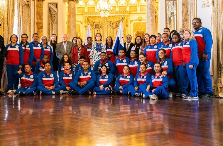 Ayer, la delegación nacional recibió el Pabellón Nacional de manos de la Primera Dama de la República, Yazmín Colón de Cortizo en un acto que se llevó a cabo en el Salón Amarillo del Palacio Presidencial.