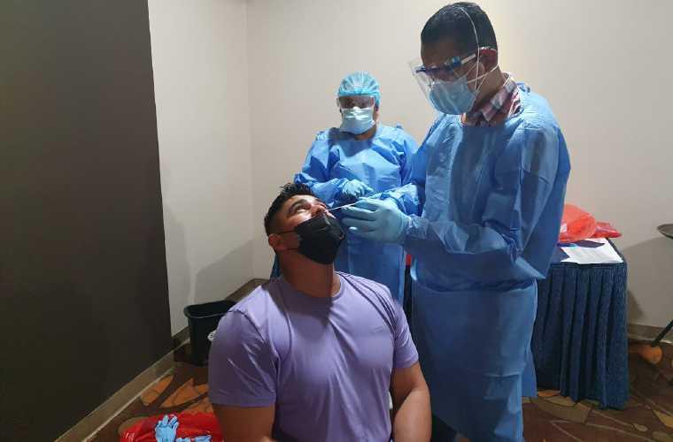 Como requisito fundamental para arrancar las prácticas, ayer los jugadores y cuerpo técnico fueron sometidos a las pruebas de hisopado, cumpliendo el protocolo de bioseguridad del Ministerio de Salud.