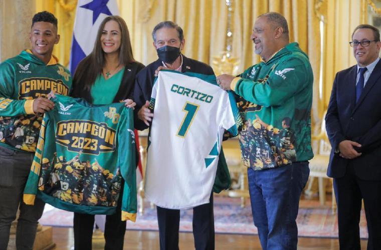 El presidente Laurentino Cortizo recibió en el Salón Amarillo del Palacio de Las Garzas al equipo de Panamá Oeste, monarca del Campeonato Nacional de Béisbol Juvenil 2023.