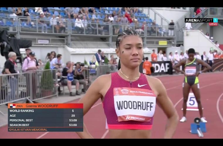 Woodruff tendrá que hacerle frente a destacadas atletas como las jamaiquinas Janieve Russell y Rushell Clayton, las ucranianas Viktoriya Tkachuk y Anna Ryzhykova, la noruega Line Kloster, la italiana Ayomide Folorunso y la francesa Camille Seri.