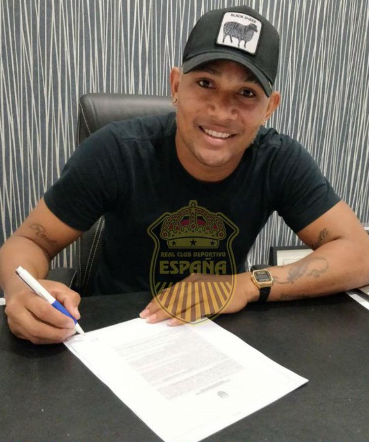 El panameño Ronaldo Dinolis ya es nuevo jugador del Real España de Honduras, luego de que hoy martes el delantero estampara su firma con el club catracho.