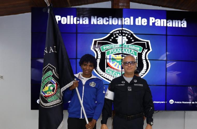 Como símbolo de apoyo y respaldo, la Policía Nacional entregó el estandarte de la institución a la sargento 2do. y boxeadora Atheyna Bylon, quien representará a Panamá en los próximos Juegos Olímpicos de París 2024.