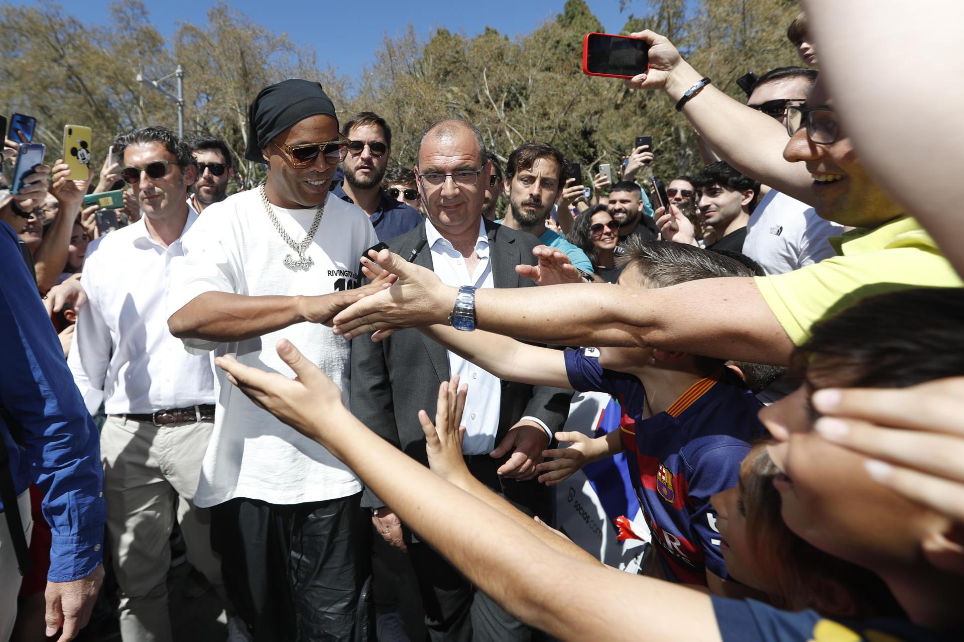 El exfutbolista Ronaldo de Assis Moreira 'Ronaldinho', quien jugara entre otros en el FC Barcelona y en la selección brasileña, recibió este sábado un homenaje en Málaga, donde recibió el premio ‘Marca Leyenda’ a su trayectoria en un acto incluido en el programa de 'Marca Sport Weekend' y destacó que a los niños les dice que "se diviertan jugando al fútbol".