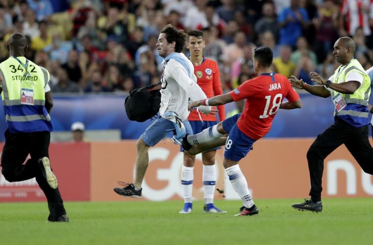 Una posible sanción al chileno Gonzalo Jara por haber derribado violentamente a un aficionado que invadió la cancha del estadio Maracaná en el partido del lunes en que Uruguay se impuso por 1-0 en la Copa América no compete al Comité de Arbitraje de la Conmebol.