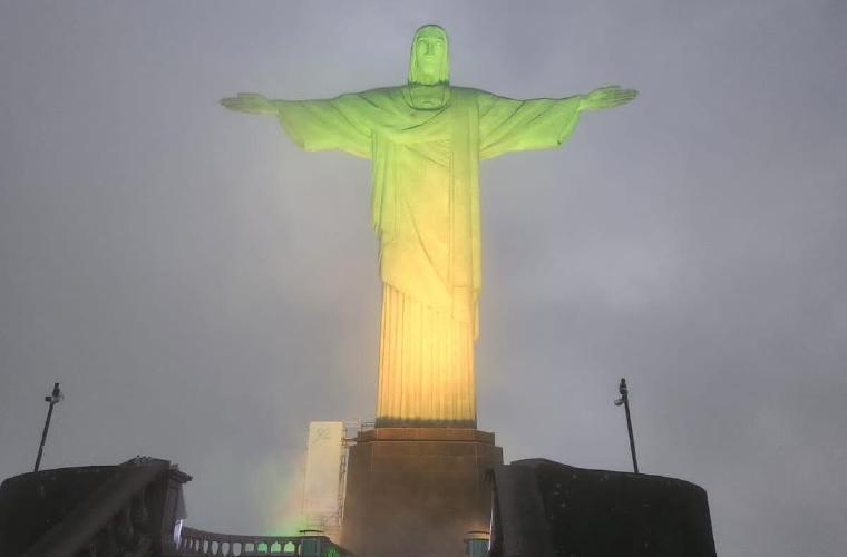 La estatua que corona el cerro del Corcovado fue iluminada con los colores de la bandera brasileña y de la camiseta de la Canarinha, que Pelé vistió tantas veces en el cercano estadio de Maracaná.