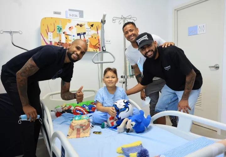 El delantero del Tauro FC, Gabriel 'Gaby' Torres, el portero del Nacional de Uruguay, Luis 'Manotas' Mejía y el volante del San Diego FC (MLS), Aníbal Godoy, llevaron alegría a los niños recluidos del centro hospitalario.
