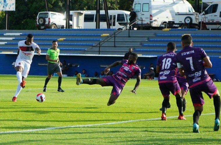 Edson Samms, con un remate de larga distancia al minuto 13, tuvo la primera del equipo de San Miguelito.