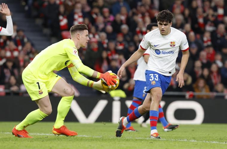 El portero del FC Barcelona Marc-André Ter Stegen no se mostró ni satisfecho ni disgustado por el empate a cero de esta noche en San Mamés en partido en el que reconoció que su equipo no llegó lo "suficiente al área" de Unai Simón como para ganarlo.