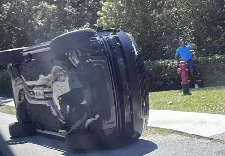 El golfista se desplazaba a “alta velocidad” por una carretera de una zona residencial, rozó un camión y volcó sobre un costado.