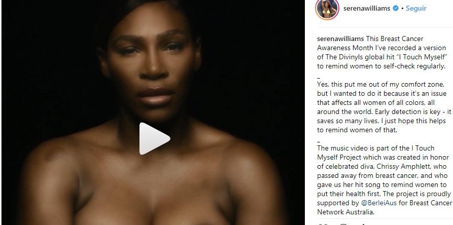 Williams escribió en un Instagram que el video, en el que se cubre los pechos con las manos, la sacó de su elemento pero quiso hacerlo porque la detección temprana salva muchas vidas.