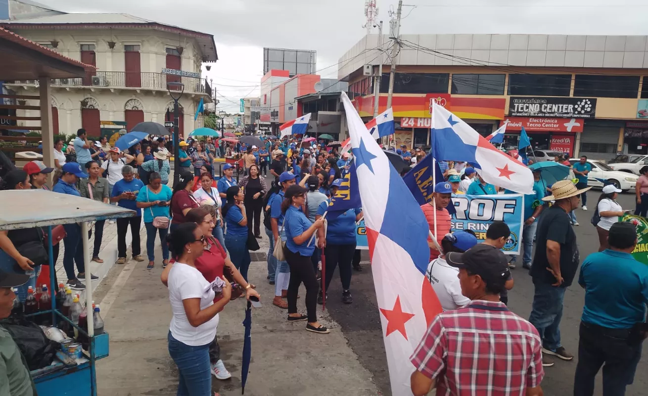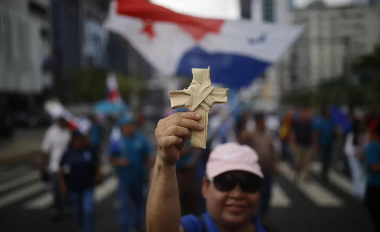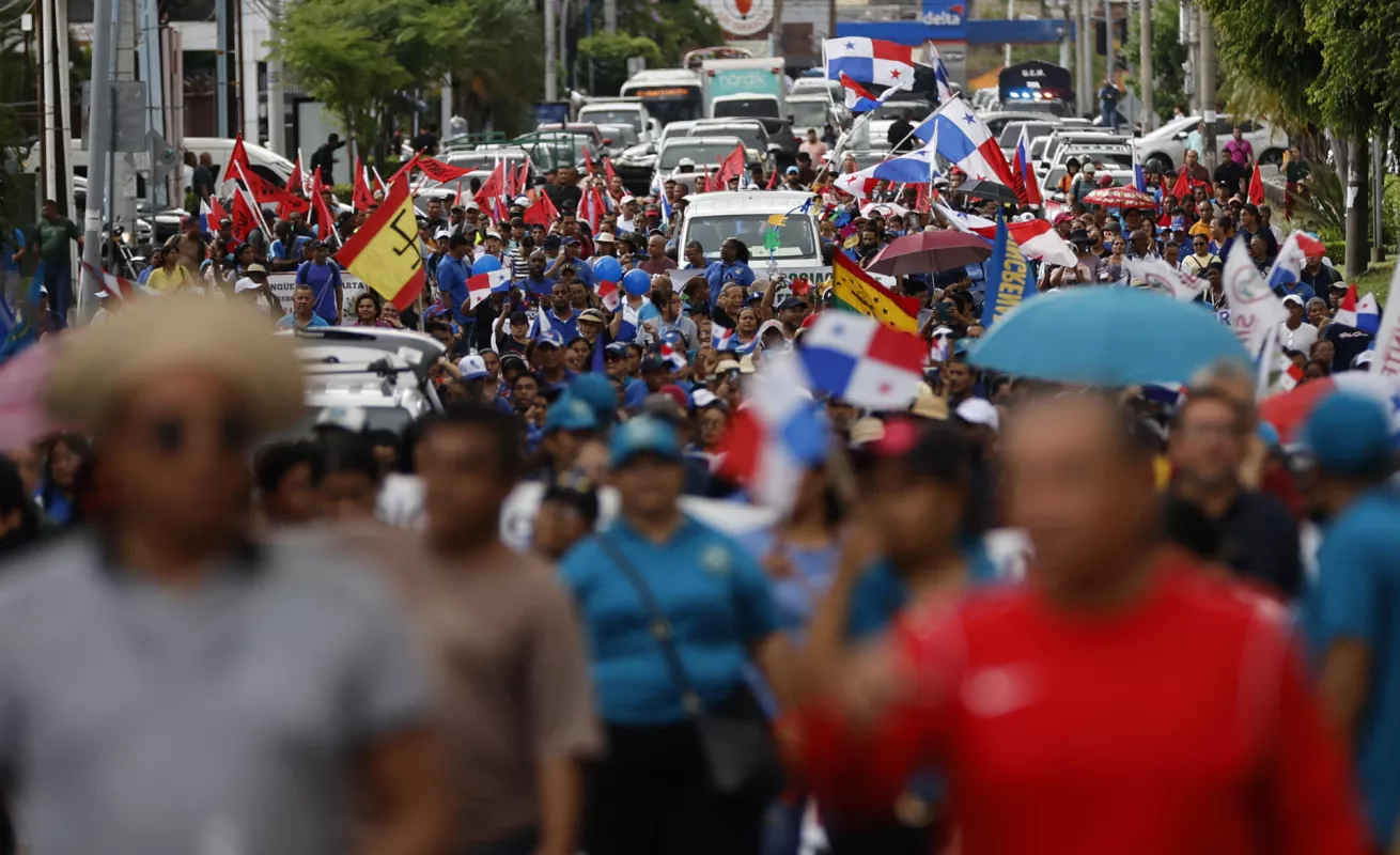 Un hombre sostiene una bandera durante una protesta este lunes. Las protestas de sindicalistas del sector docente y de la construcción contra una serie de iniciativas gubernamentales, entre ellas la reforma ya vigente de la seguridad social, se desarrollaron sin mayores consecuencias ni gran convocatoria en Panamá, donde las clases fueron suspendidas por el Gobierno como medida de seguridad. EFE