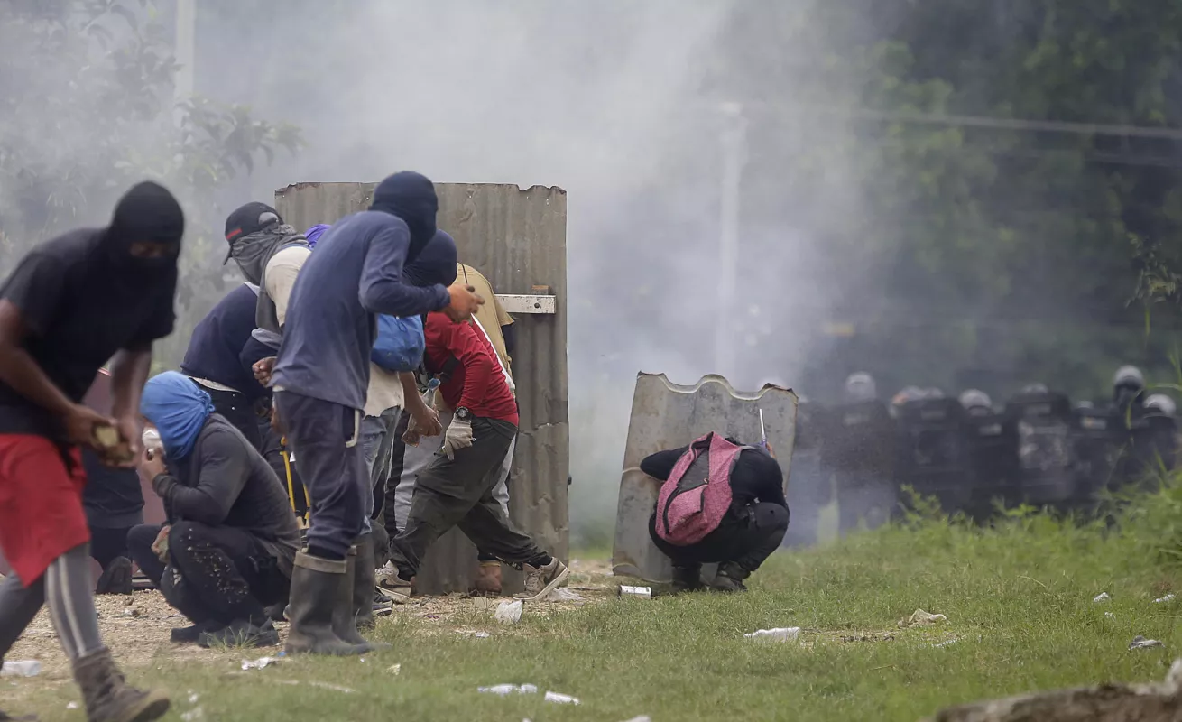 El enfrentamiento comenzó cuando la Policía llegó para despegar un tramo de la carretera Panamericana, que atraviesa todo el país, bloqueado con troncos de árboles derribados en las cercanías, donde además se ubica Arimae.