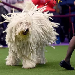 Perros salen del salón de belleza