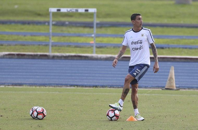 El jugador argentino Ángel di María no completó ayer el entrenamiento con su selección por una sobrecarga muscular, por lo que es duda para la final del domingo en la Copa América Centenario.